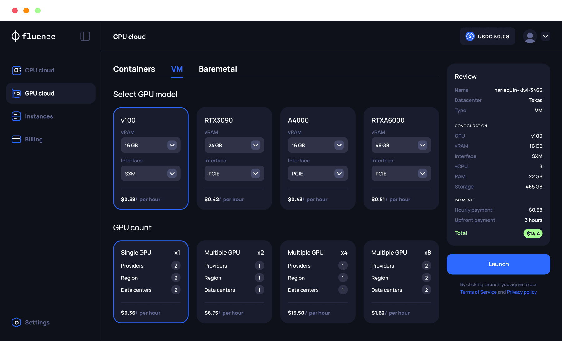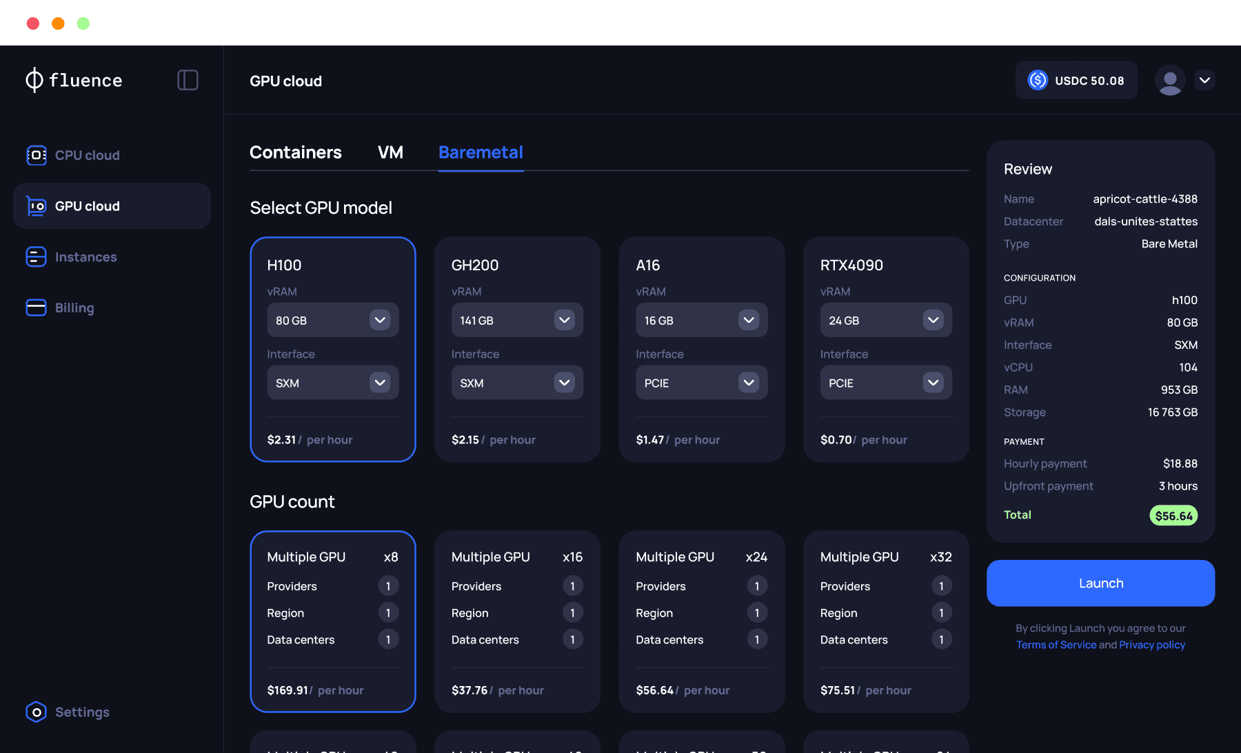 Rent Fluence GPU cloud servers at simple hourly rates with predictable spend